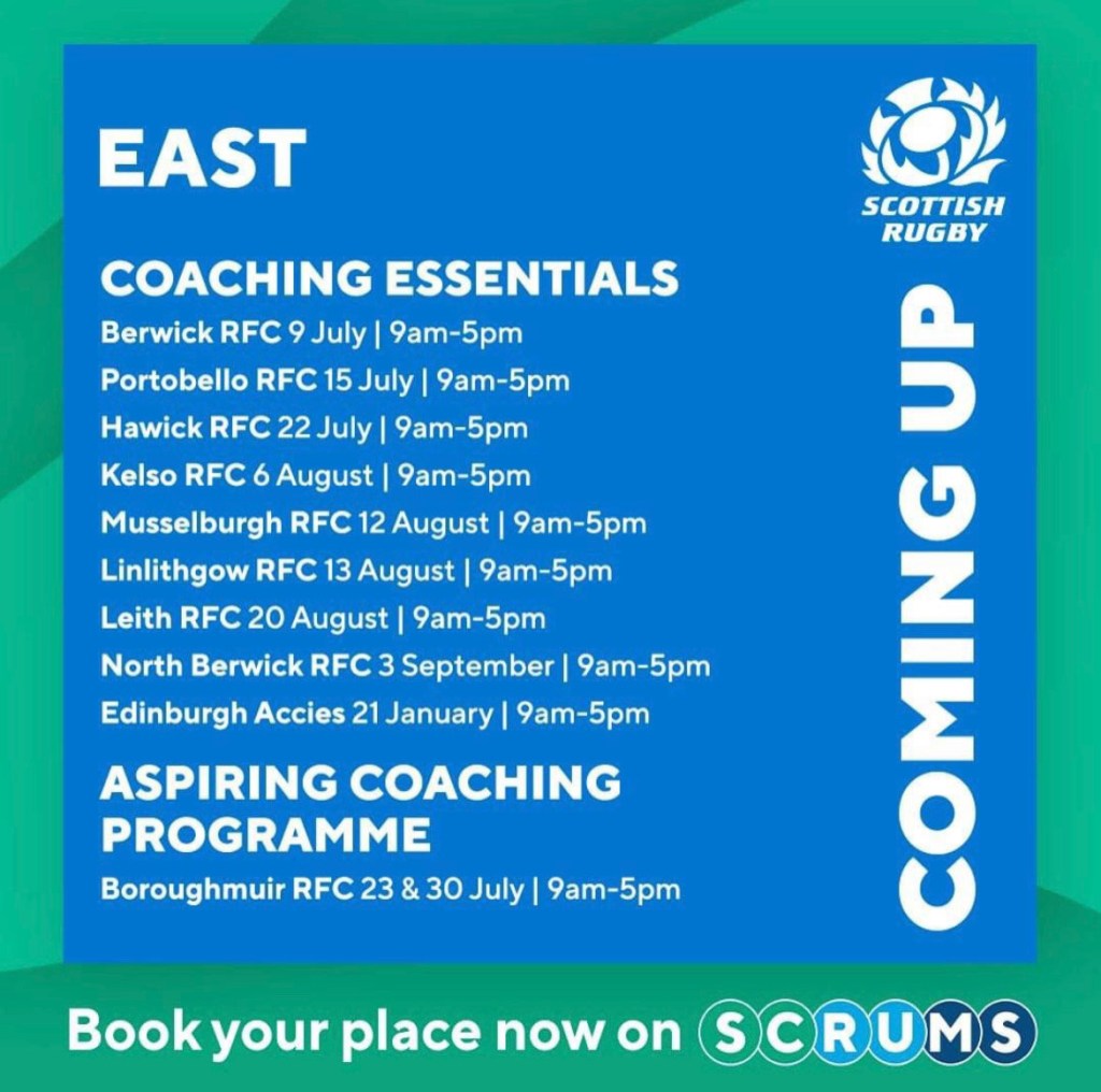 As discussed at the coaches meeting after the AGM by the end of the coming season all club coaches need to have completed a rugby essentials course as a minimum so they can be registered on Scrums and be able to continue to coach. We have a course being hosted soon in Linlithgow.