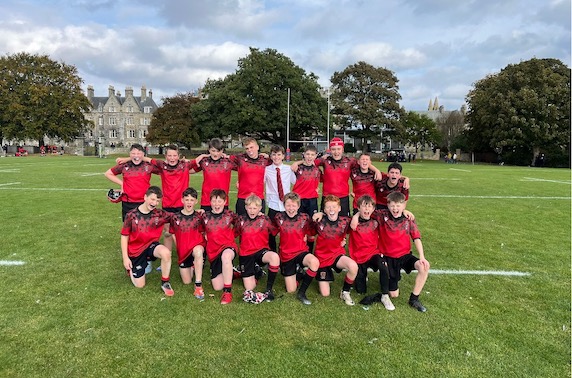 Having travelled to St. Andrews with the S2 and S3 squads the S1’s got off the team bus at St. Leonards School for their game with Madras. With some coaches wisely travelling separately arriving with ear drums intact, it was clear the S1 reds having exhausted their repertoire of tunes (and the driver probably!) were in high spirits and were up for the challenge in idyllic rugby surroundings. With an onsite snack trailer offering bacon rolls to the travelling supporters, and a famous ice cream shop a short stroll from the pitch, surely S1 rugby can’t possibly get better than this?