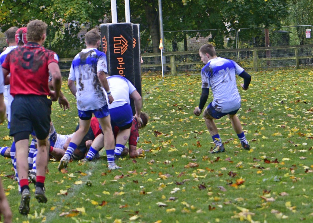 Thankfully the Reds responded well and were level within 5 minutes. After solid ball delivered by the forward pack, Jack Frame managed to get outside his opponent and make ground before passing to Luke O’Hara who fed Murray Johnstone only for him to be held just short of the line. The ball was quickly produced and passed to Eioan Magee and there was no stopping him as he charged over for a try which was converted by the captain.