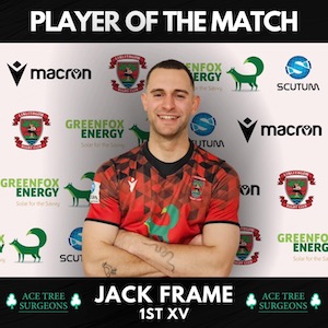 As the 2nd half progressed, Jack Frame narrowly missed a long distance penalty attempt but quickly made amends by converting another after a great scrummage effort by the pack resulted in the referee awarding the penalty.