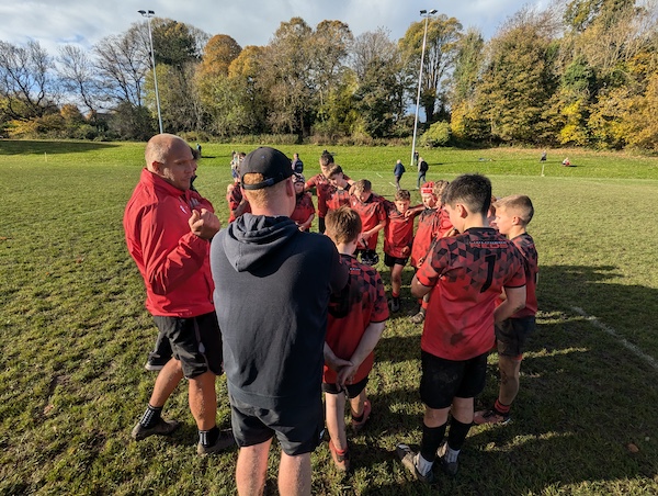 Linlithgow appeared shell shocked as their slow start had them down 14 points within 5 minutes. A third restart from Dunbar fell into Callum’s hands and he barged through to the 22 with literally half the opposition team members hanging off him. A penalty was set up which Max hoofed over the fence, for a very safe touch. From this line out Blair at scrum half spun the ball out to the centres before switching and firing the ball back over to the left wing who was just pushed out on the try line. The Young Reds were now awake, fired up and ready to show what they were capable of. A long kick up the pitch put the boys on the defence again, as Jay showed how talented a footballer he is by trapping the ball. Notable tackles were being made all over the field from Scott, Ruaridh and Lucas who were thwarting the continual attacks. Gritty defence continued but with everyone forced in to stop their large pack the Green and Blue’s right wing went over for a simple try.