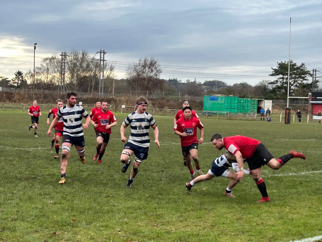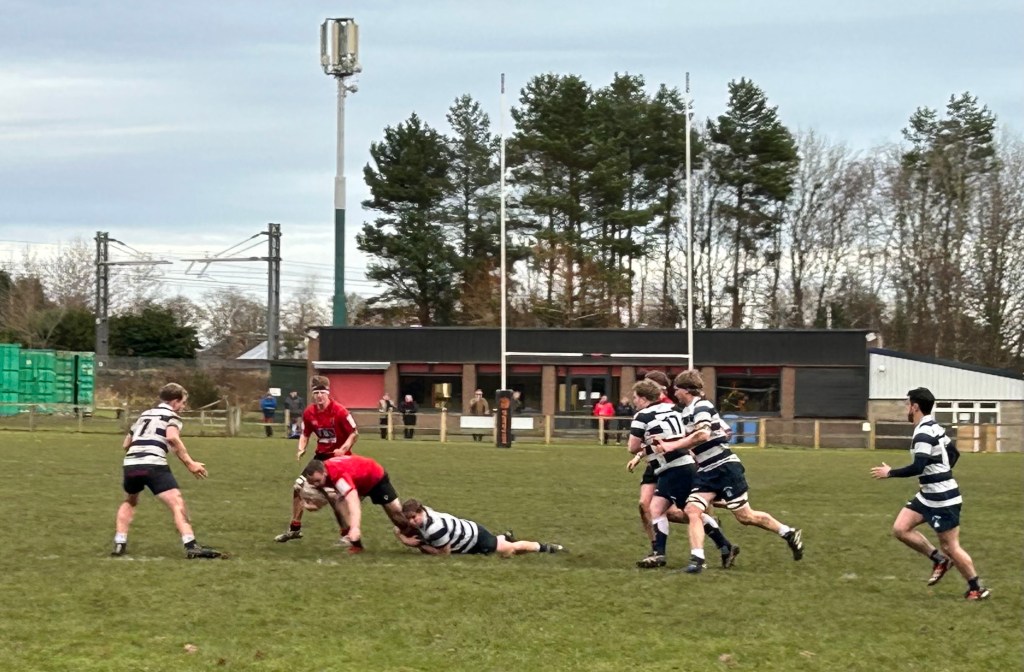Heriots were dominating the line-outs and had some sharp experienced runners and eventually they scored a couple of tries out wide. At half time the score was 7-10 in the visitors’ favour, but we were confident in going back in front after the restart.