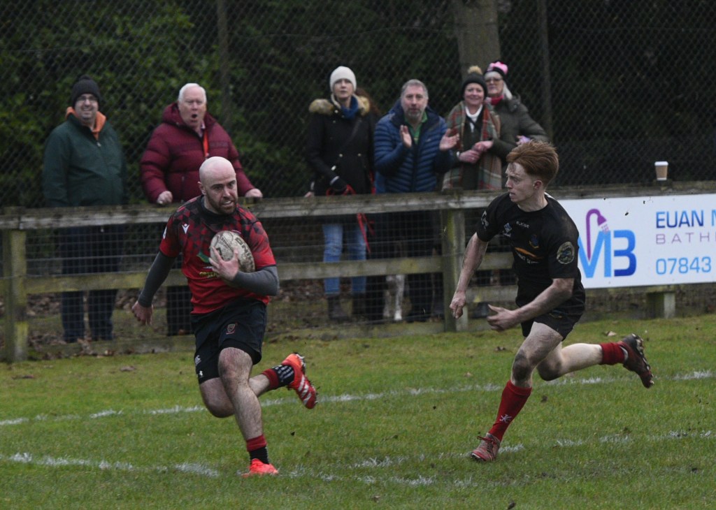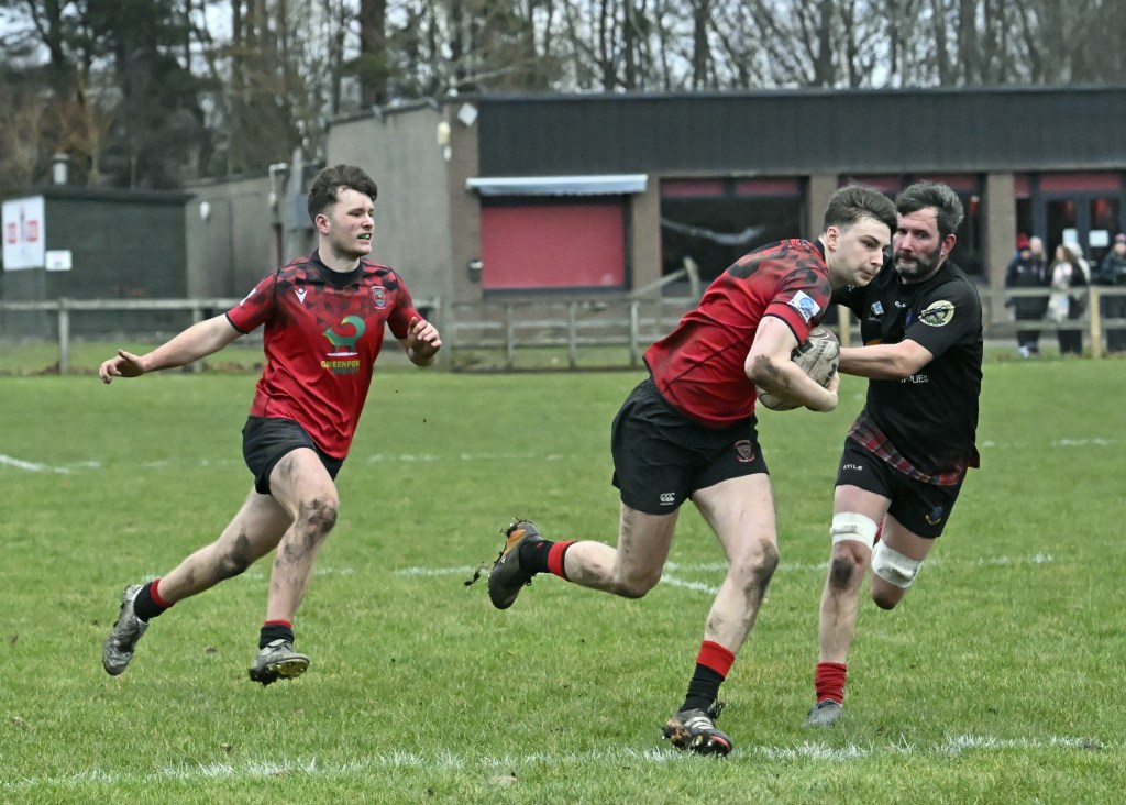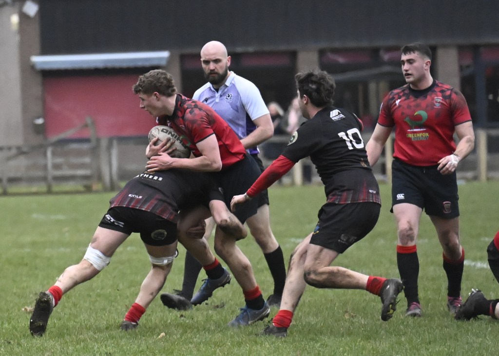 Throughout the game Linlithgow were giving away too many penalties, however, with the visitors on the attack, Linlithgow managed a turnover and Euan Mochrie scored, duly converted by Frame. With the game stuck in midfield for a while, Conor Findlay made a break scoring an excellent individual try, Frame converting. Linlithgow were hitting a purple patch now with Ruaridh Stewart going in for the bonus point try, also converted by Frame.