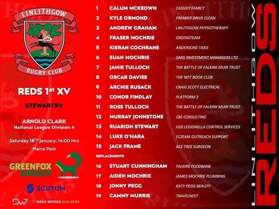 There are no easy fixtures at this stage in the season. A welcome win for Linlithgow after 3 straight defeats. A good performance overall, particularly from man-of-the-match Murray Johnstone and captain Jack Frame who kicked 18 points. However the Reds will need to improve the discipline and cut the backchat!. Stewartry kept going for the whole match, and Linlithgow struggled to contain their two speedy players. They are currently 11 points behind Linlithgow but with a game in hand so they have work to do.