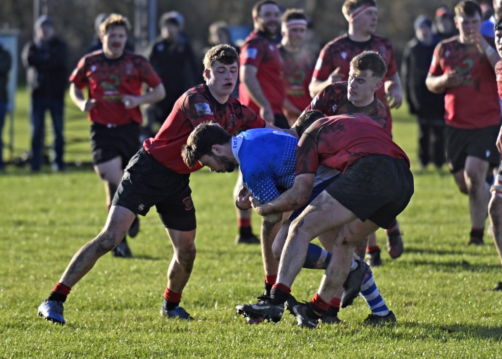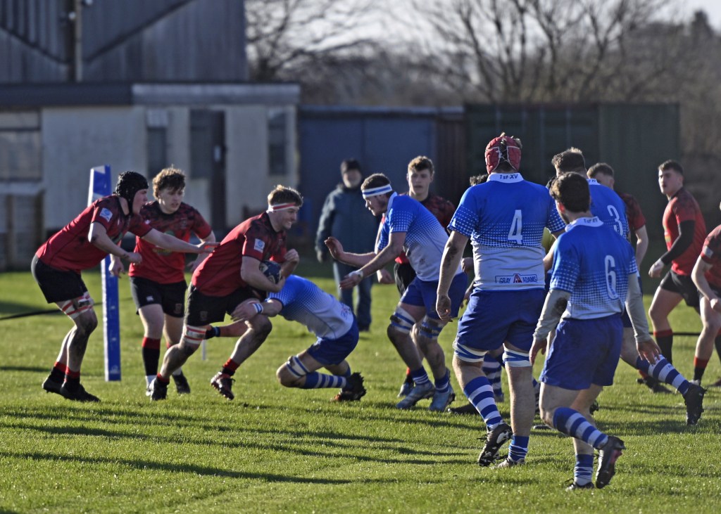 In fact, it was the Reds who scored next when, after 2 yellow cards were shown to the home team, the visitors capitalised on their number superiority with a fine team try. From a line-out, the ball was moved left then right to stretch the home defence and Conor Findlay executed a lovely chip out to the wing where Luke O’Hara collected the ball to score a nice try. This brought the score to 14-12 but there was still time for the hosts’ full back to kick a penalty to make the half time score 17-12.