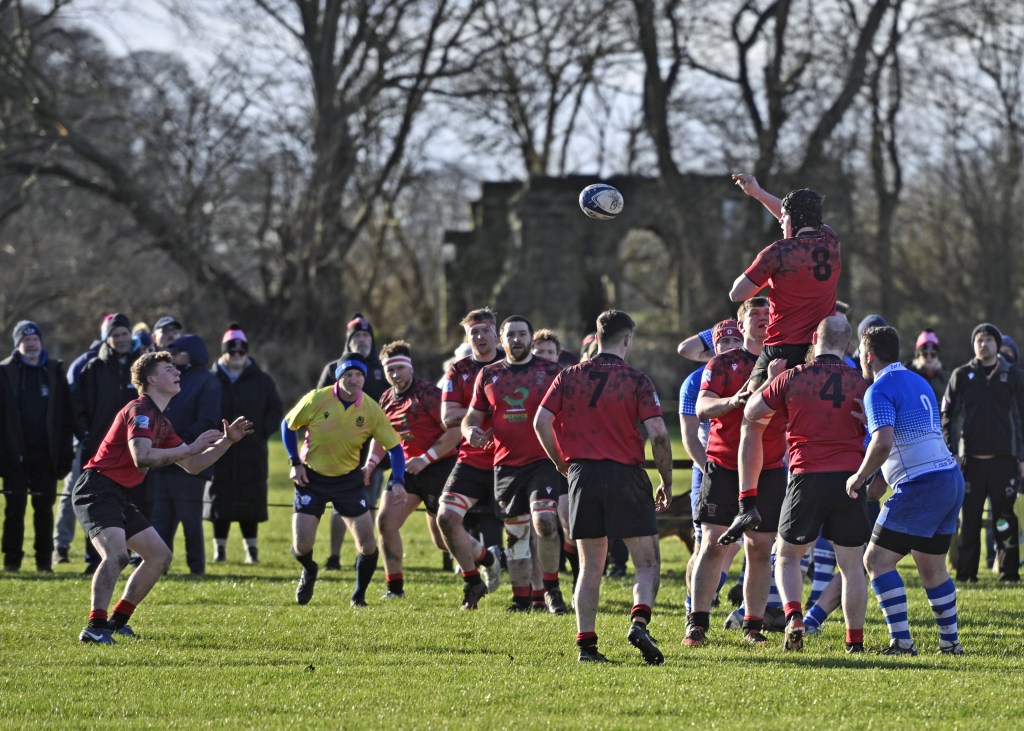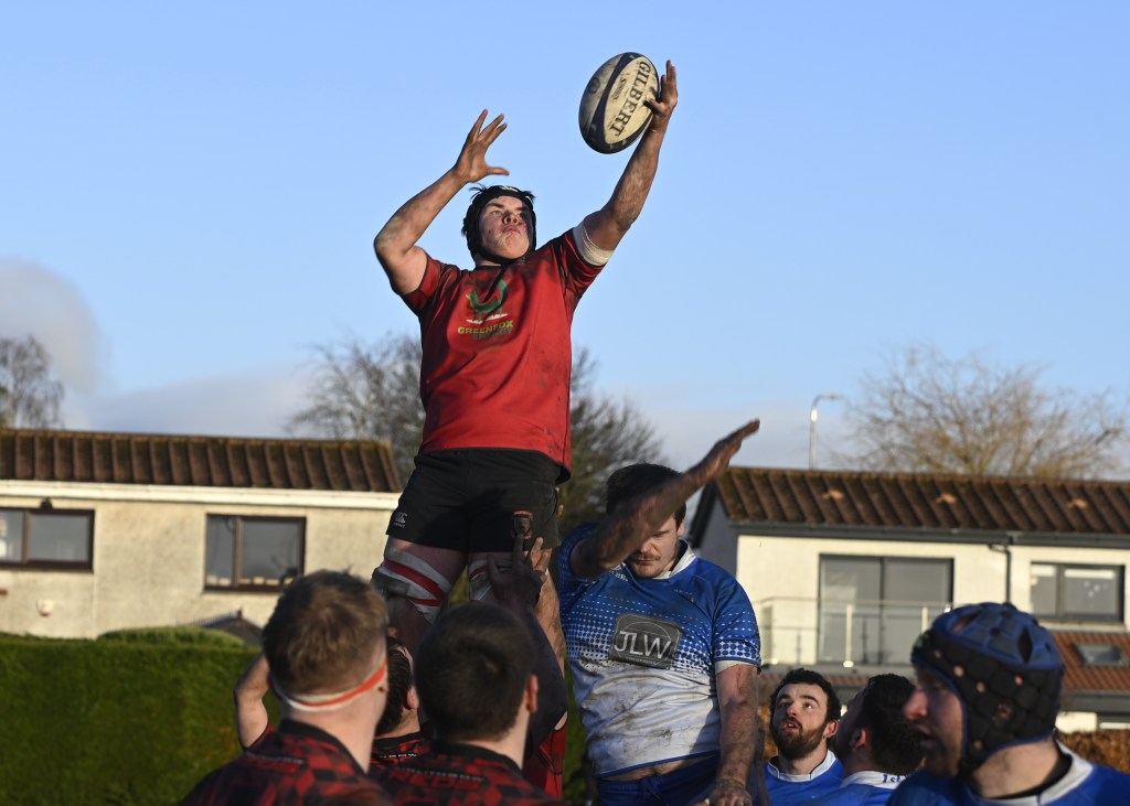Dunfermline dominated the opening exchanges with their heavy forwards running hard at the Reds’ defence and making ground as the visiting tacklers were forced back as they struggled to stop the flow of attackers. Captain Jack Frame relieved the pressure with a clearing penalty kick but that was his only contribution to the match as he sustained an arm injury within the first 5 minutes and was replaced by Cammy Murrie with Ross Tulloch dropping back in to the full back position. At this stage, the forward battle lines had been set with hooker Kyle Ormond’s throws regularly finding the target of Oscar Davies to gain much needed possession for the visitors and the scrummage, although under pressure, was secure enough to ensure ball for Archie Rusack.