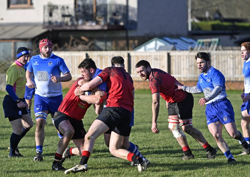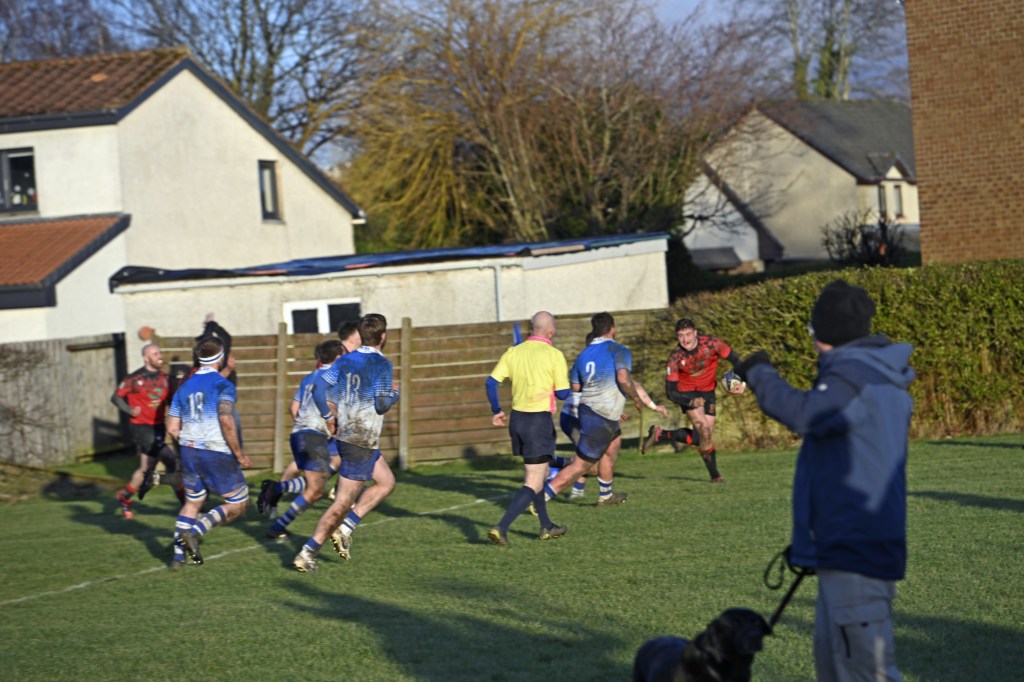 The visitors had the scent of victory in their nostrils and Luke O’Hara nearly scored when, after a fine inside pass from Conor Findlay had split the defence, he was held up over the line. With time running out the attacks were coming in waves and eventually with the last move of the game and after several powerful forward drives to the line, Conor Findlay threw a long pass, missing both centres, into the hands of Ross Tulloch who touched down for the equalising try. Conor’s difficult touchline conversion attempt just drifted wide of the posts and the referee ended the game at 29-29.