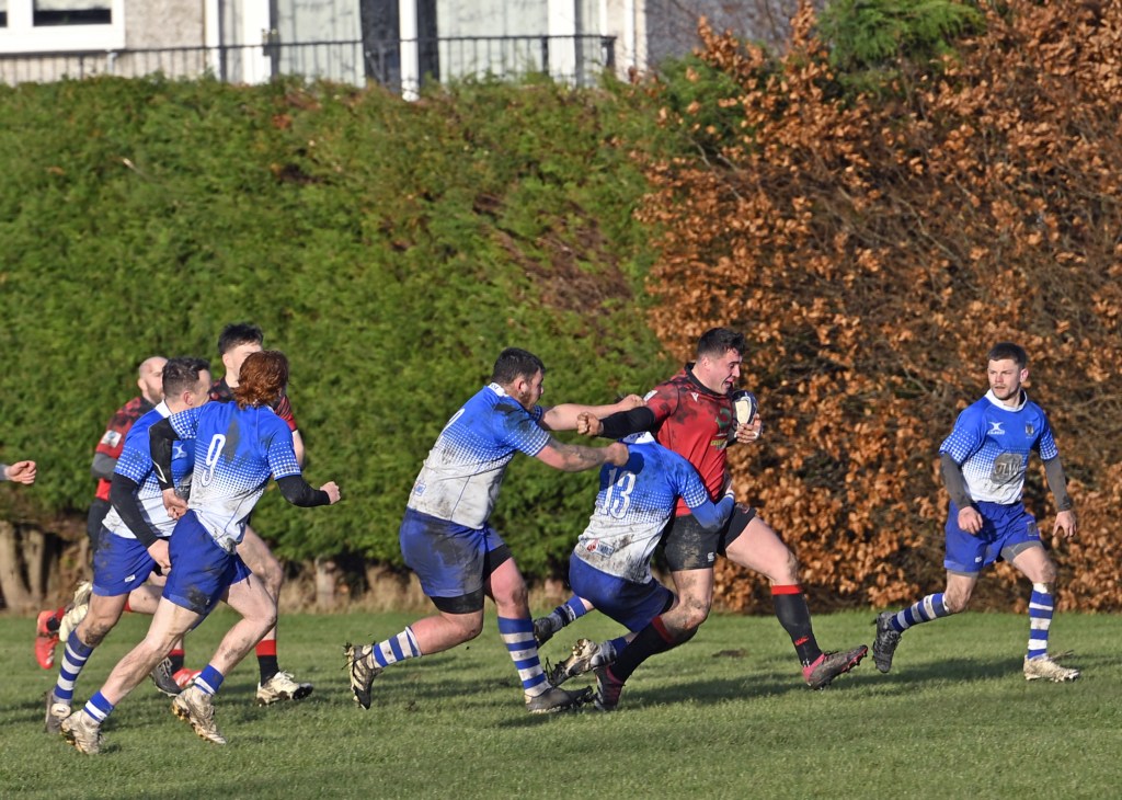 One of the gutsiest performances of the season from this Reds squad against a strong Dunfermline side. Spirit and determination were evident for all to see and the high tempo rugby they played, and their fitness levels eventually overcame a stuffy defence. The Reds have all developed good handling and ball carrying skills and the interchanges between forwards and backs work well.