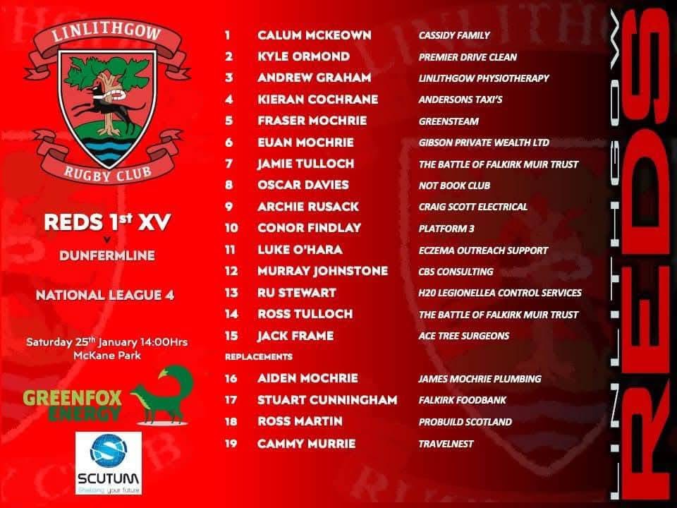 Last Saturday saw the Reds visit Dunfermline for an eagerly awaited clash with the hosts who lie in 3rd place in Arnold Clark National League Division 4. The season’s earlier fixture saw Dunfermline snatch a late victory in Linlithgow, so the Reds were expecting a hard shift and that is exactly what happened. After Friday’s severe storms, playing conditions at McKane Park were surprisingly good with a strong breeze, bright sunshine and a well grassed playing surface. As usual, the Reds had a sizeable and vociferous travelling support who were treated to a very competitive game.