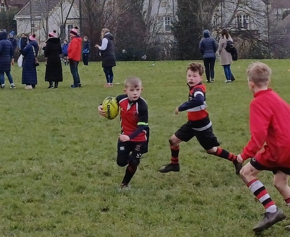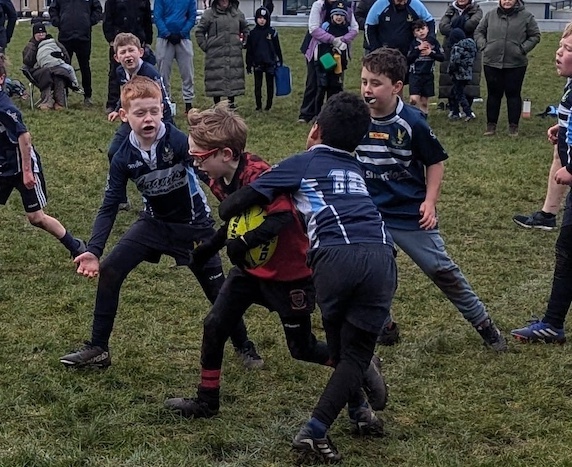 Both the ‘canal side’ team and the ‘school side’ team started with tough exciting games against Accies and County, with the 4 matches too close to call. Throughout the games, the whole squad used the various skills that they have been working so hard on during the winter, including quickly moving the ball away from the tackle area. Highlights also included lots of brilliant ‘round the ankles’ tackles, some aggressive defence to drive the bigger Accies’ boys into touch and loads of excellent breakaway tries.