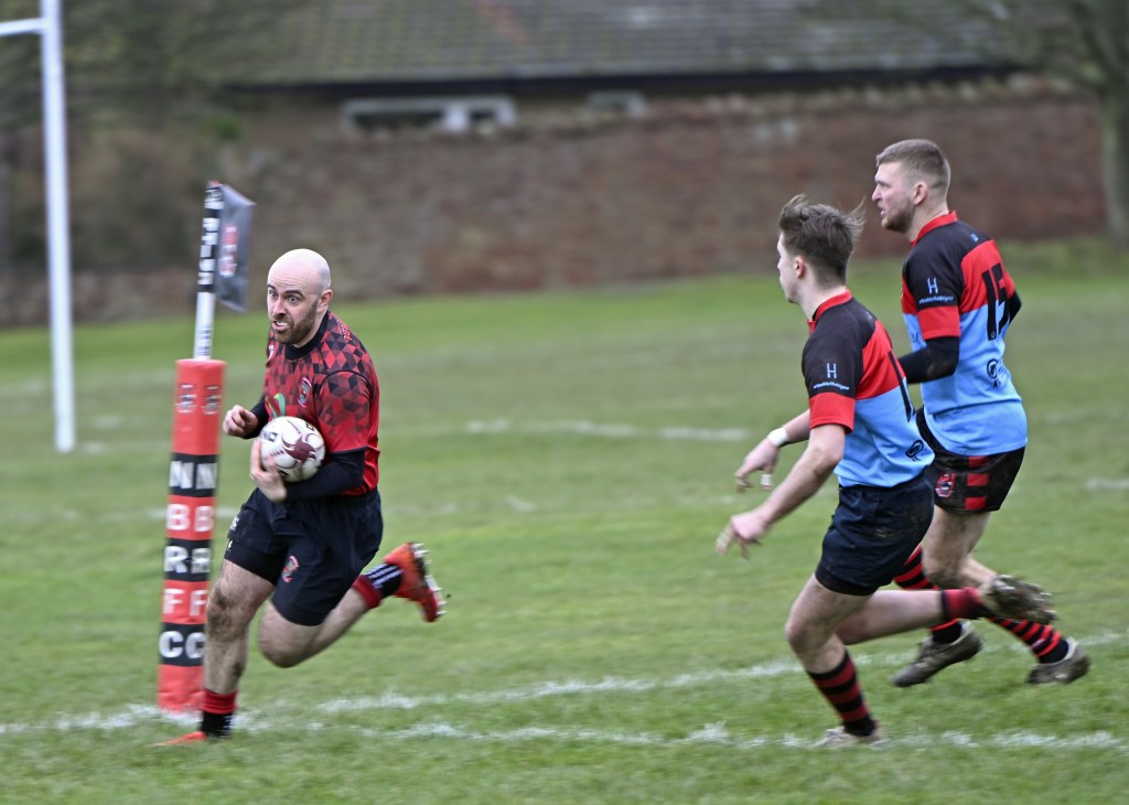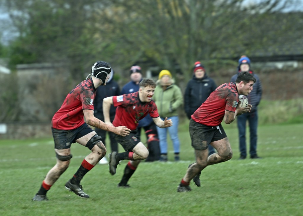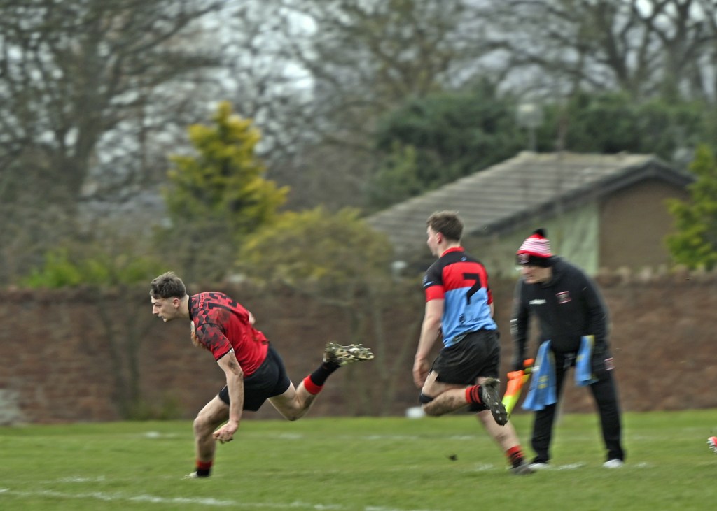 The 2nd half took a while to get going as the home side tried to gain some territory and play again got a bit scrappy. However, when they remembered to move the ball wide and early the Reds immediately scored a try. Ross Tulloch made good ground from his own half and gave a well-timed pass to Jack Frame supporting on his inside and he outstripped the defence to score under the posts. The tries began to flow at regular intervals during the half with Fraser Mochrie galloping over after a lung bursting 30 metre run to the line.