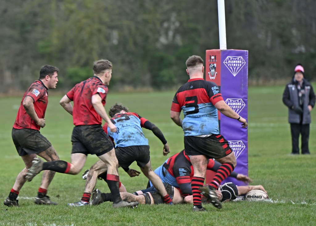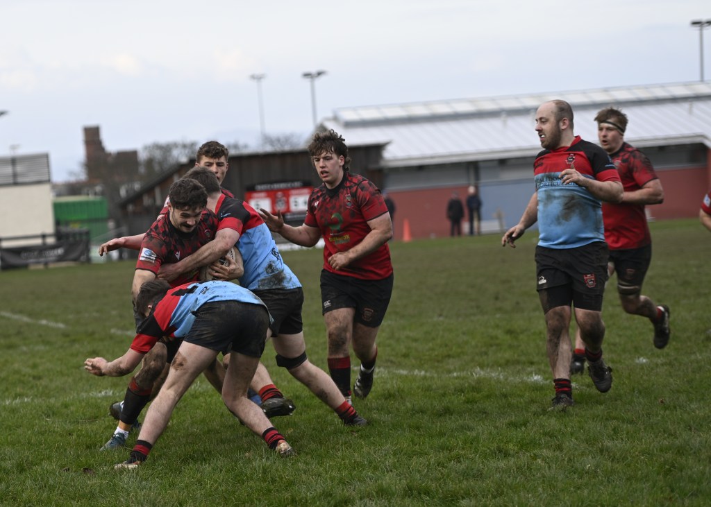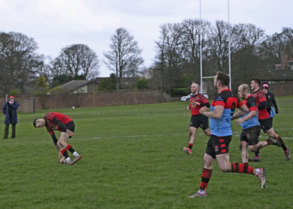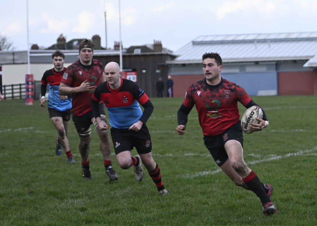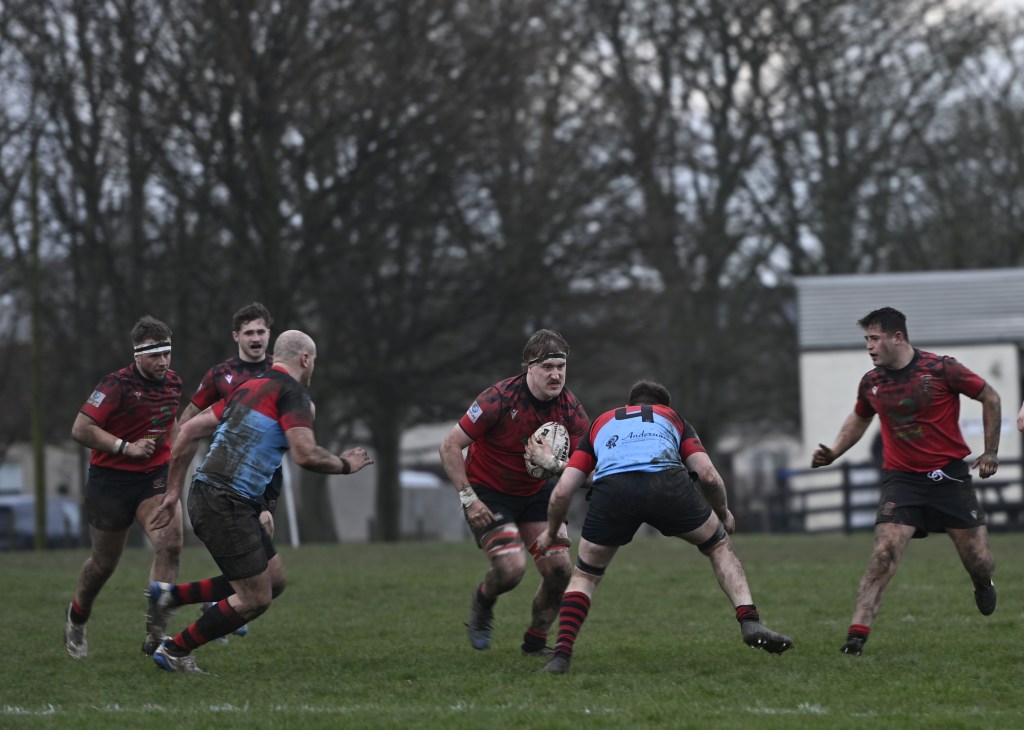 The Reds started the game with a bang and were 2 tries ahead within 5 minutes. After some excellent build up play provided some good ball, slick passing sent Cammy Murrie in for 2 tries both converted by Jack Frame. The home side did respond with an unconverted try but the visitors soon stretched their lead with a try from Ru Stewart after another clean phase of passing created space out wide.