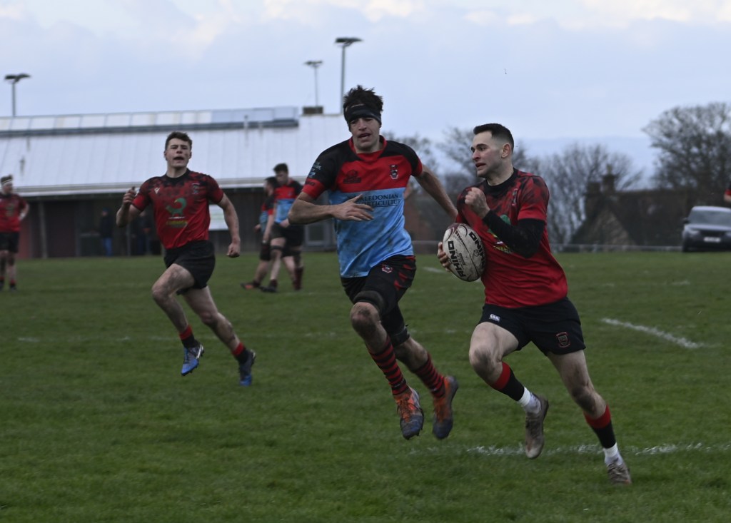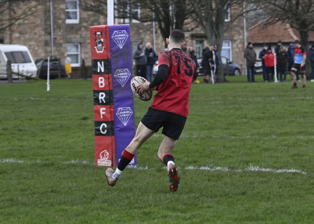 North Berwick did get another try following a tap penalty, but normal service was resumed with the most popular try of the day when debutant Lewis McGill showed real strength and determination to battle his way over the line much to the delight of his fellow players and the travelling support. Almost straight from the restart, Ru Stewart completed a personal hat trick of tries when he took a scoring pass from Ross Tulloch and glided over in the corner.