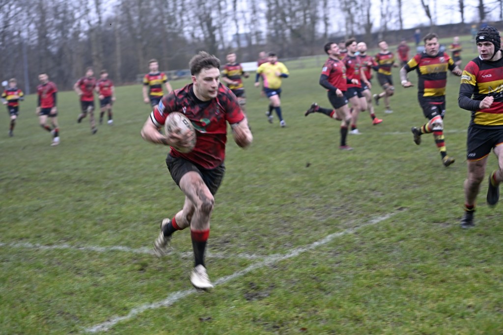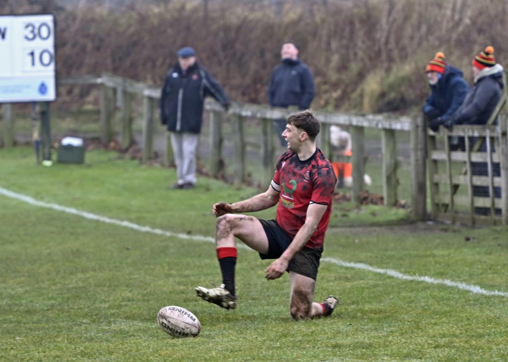 After Greenock’s 1st try, the Reds changed personnel with Stuart Cunningham, Oscar Davies and Luke O’Hara coming on the field to join Aiden Mochrie as replacements. The Reds did respond with good pressure in the visitors 22 which led to a charged down kick being collected by Ru Stewart who dived over the line, but the referee disallowed the score. The home side did then score when after a clearing kick by Greenock, Luke O’Hara fielded the ball in midfield, and he passed the ball to Jack Frame who accelerated through the defence before sending a long pass to Ru Stewart who flew in for a try in the corner. The extra points were added to make the score 37-10.