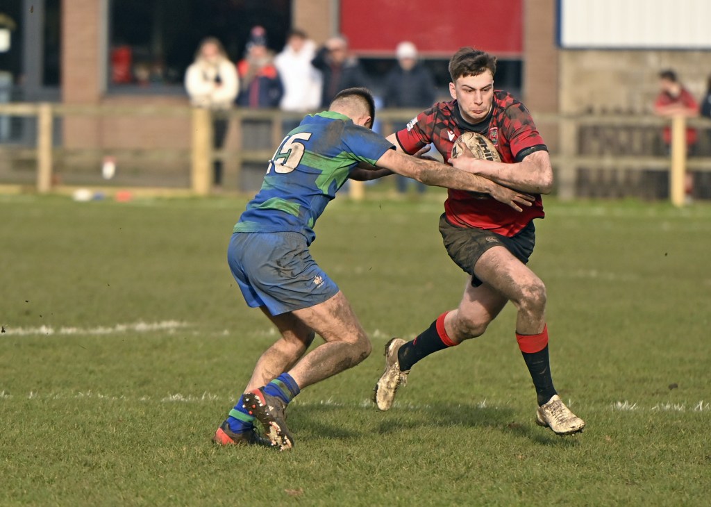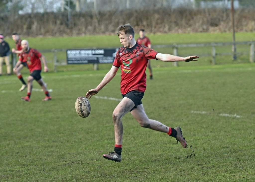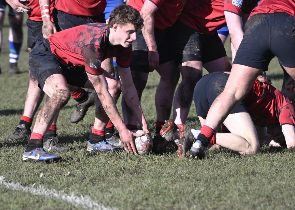 The home team fielded a strong line up boosted by starting returns for Oscar Davies, Euan Mochrie, Ross Martin and Luke O’Hara. The Reds kicked off with a significant breeze behind them and dominated the early exchanges including in the line-out after last week’s unexpected problems in that area. Hooker Kyle Ormond was finding his targets well and this provided regular good ball to the backs. Within the first few minutes Conor Findlay created the opening try when he reversed a long pass to Jack Frame who spotted a large hole in the Hamilton defence and he cruised through for a try to which he added the extra points.