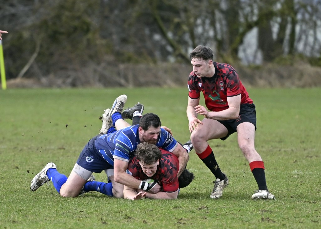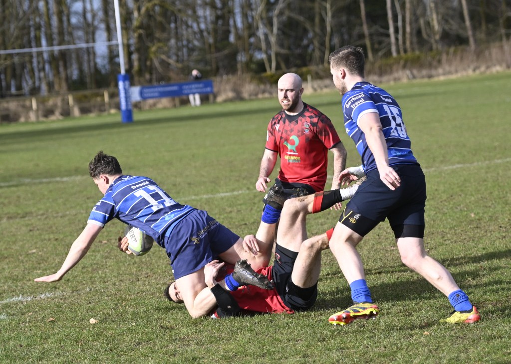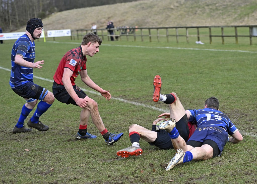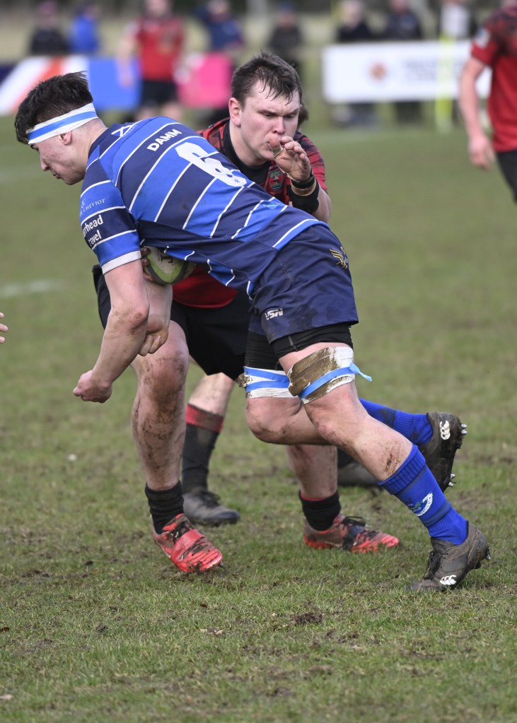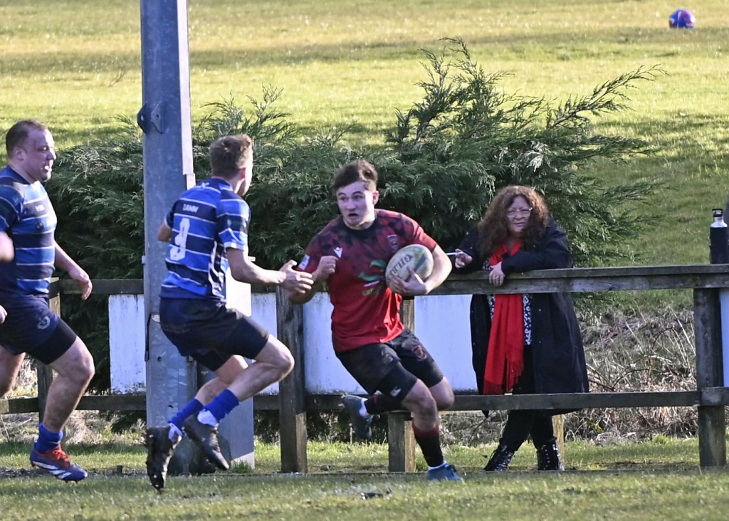 Back came Linlithgow and Jack Frame scored another try which he converted himself. Back came Whitecraigs with an unconverted try of their own with the conversion hitting the outside of the post. Linlithgow went further ahead with a penalty from Jack Frame after good work by Cammy Murrie. As half time approached, Whitecraigs scored another try, once again the conversion hitting the outside of the post. It’s fair to say that neither team’s defence was outstanding in the first half, but it was great for the spectator. 22-18 in favour of the visitors at the break.
