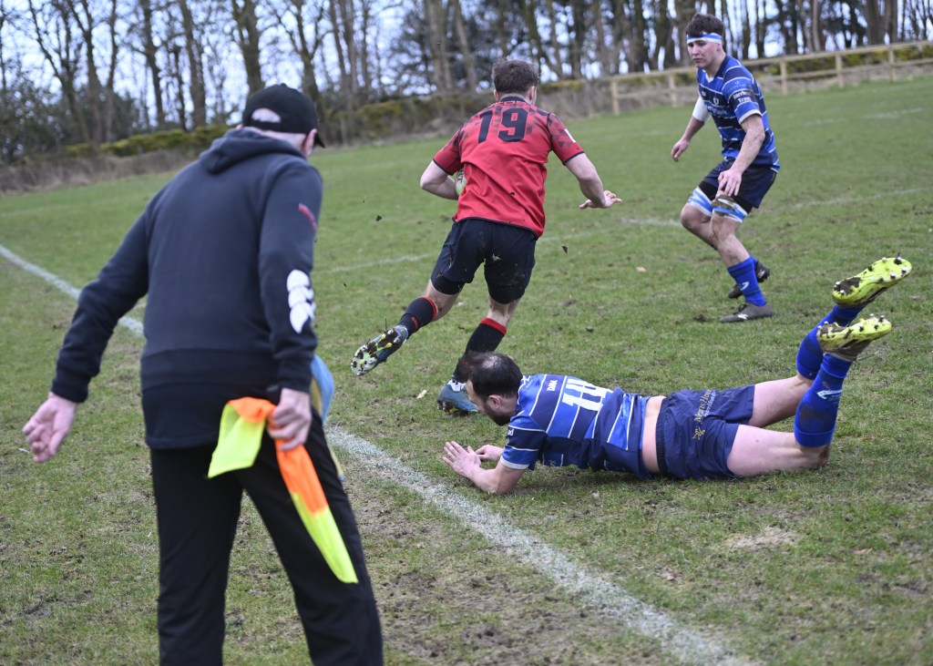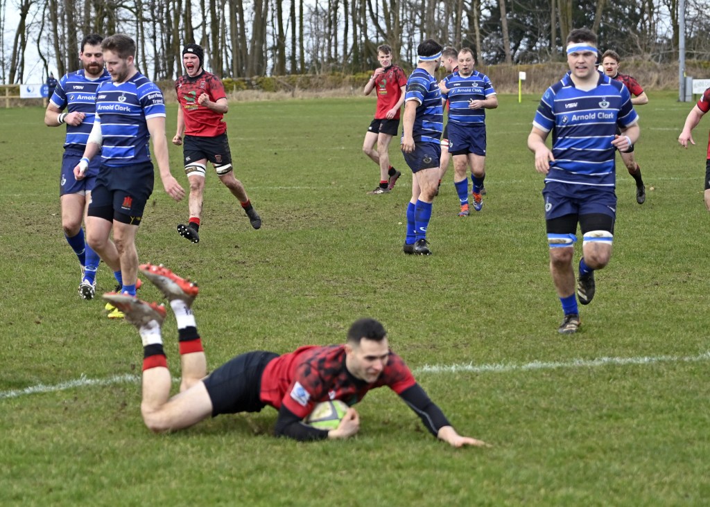 With substitutes Calum Lindsay and Luke O’Hara replacing Cammy Murrie and Ross Tulloch, Linlithgow were hoping to capitalise from their fresh legs, but it was Whitecraigs who scored a converted try next as they carved through the Reds defence with ease.