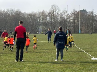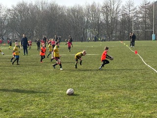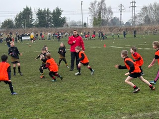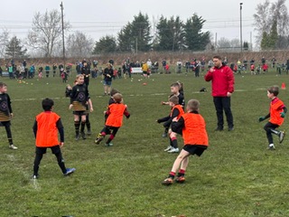 Building on our 2 x fixtures so far this season, our P3s worked together in two separate teams and played 5 x 8 minute games against teams from other clubs on P4 SRU regulation pitches of 22m x 28m. Since the start of this season, we’ve been working on running forwards and passing backwards in attack and tackling on the hips with two hands and moving forwards and backwards in a line in defence. With their Coaches supporting them, it was fantastic to see these skills in action during real games of touch against competitive opposition.