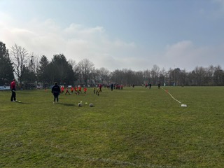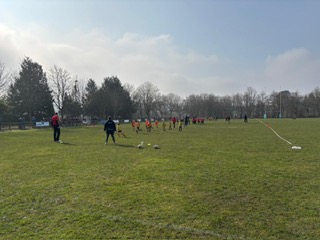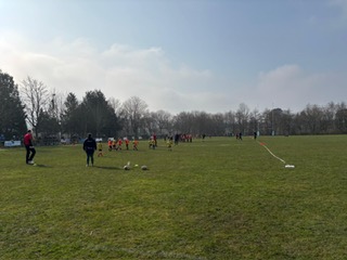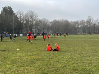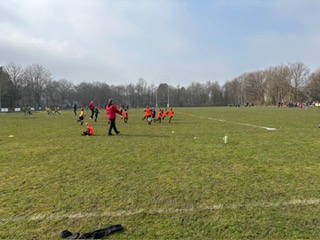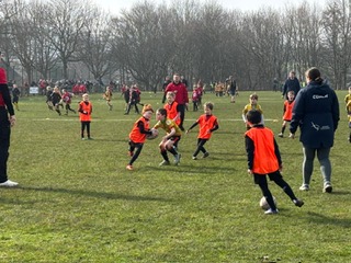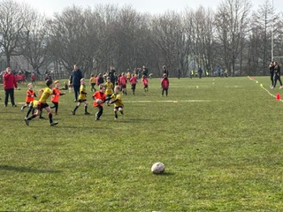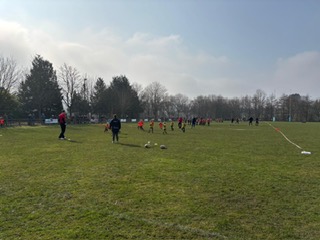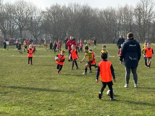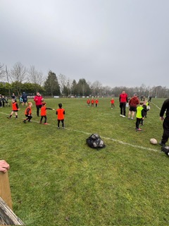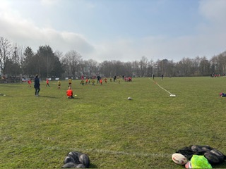 Working together in two separate teams, our P1s and P2s practiced their “W”s for catching and did lots (and lots) of running around during their 4 x 8 minute games against teams from other clubs.