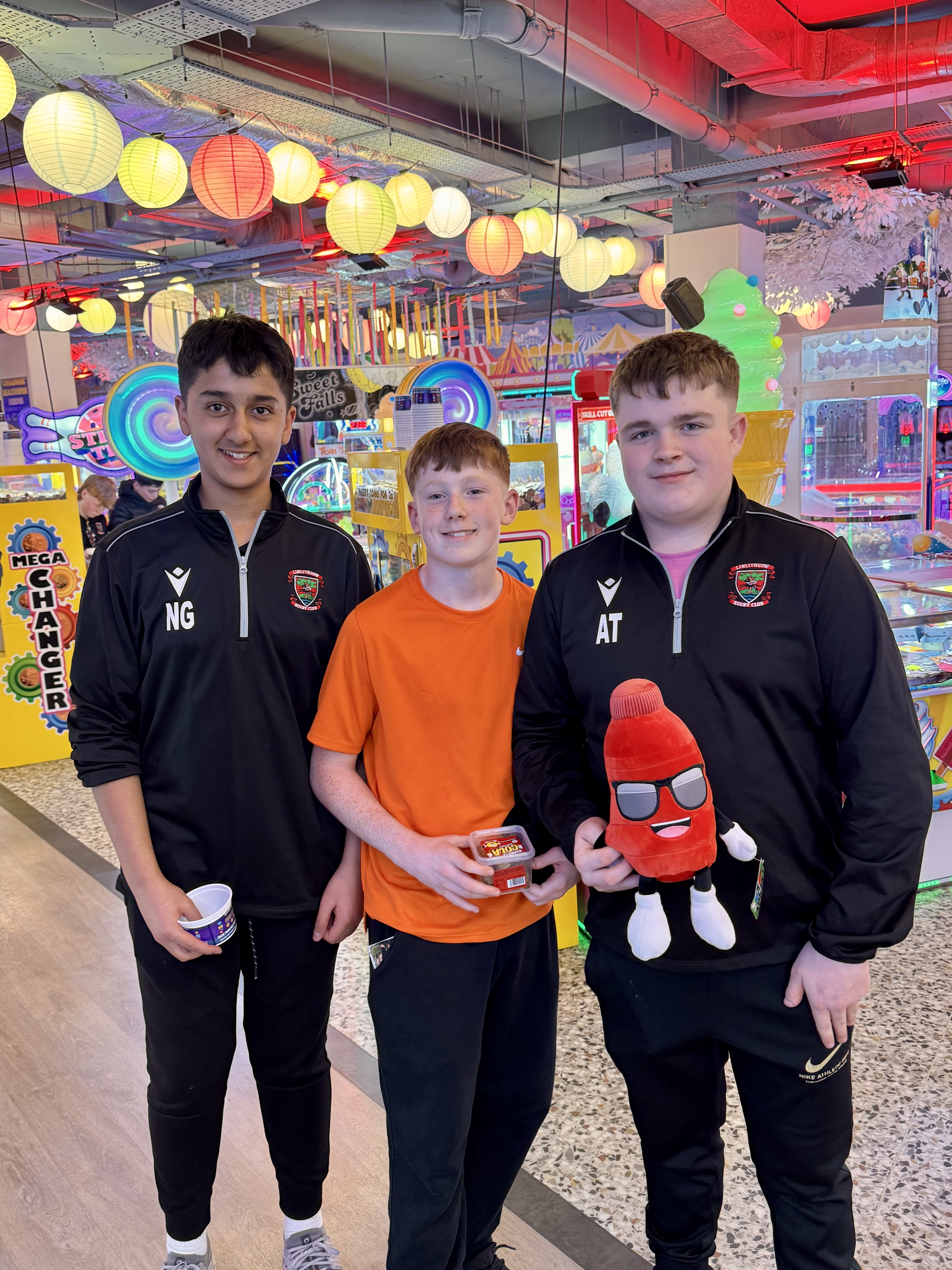 - Amusements: The boys tested their skills (and luck) in the arcades winning tour mascot Reggie Red