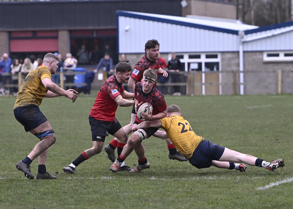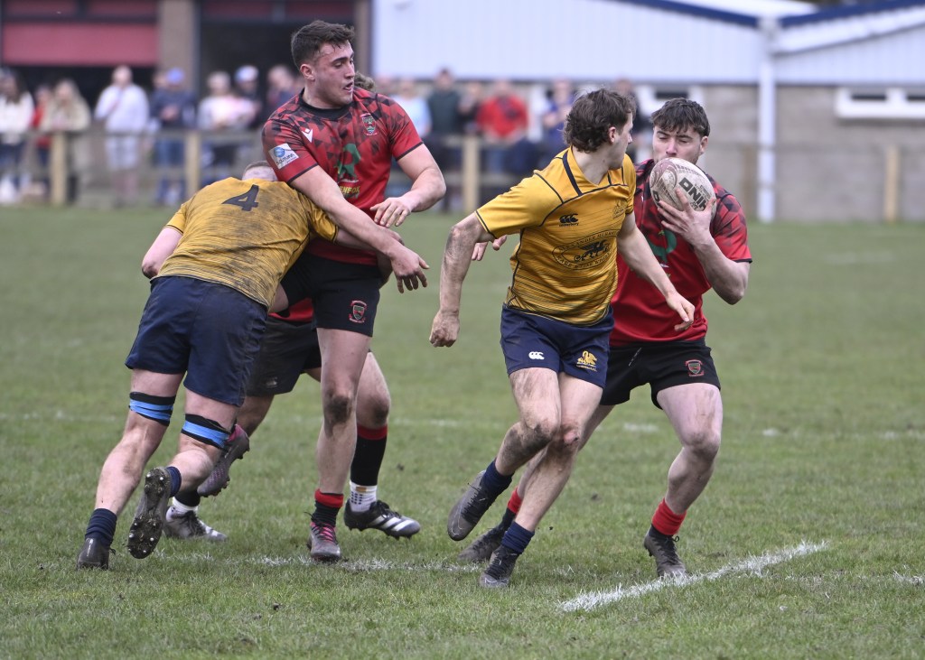 In fact, when they were restored to a full 15, they exerted some pressure deep in the visitors’ territory and were unlucky not to score on a couple of occasions. During this phase Jack Frame had to retire injured and Gordonians scored a very good try under the posts. Murray Johnstone had to move in to become the 3rd Number 10 of the day for the Reds and he seamlessly took on the role with great assurance. Calum Lindsay, alongside some excellent tackling, also had a couple of great runs just foiled by an opposition interception that ended with them scoring after some show boating resulted in another try.