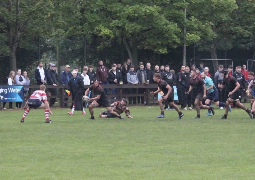 The home side made a fast start with a try in the first 10 minutes. From a midfield scrum Jack Frame switched play to the left and found Ross Tulloch with a long pass, and Ross fed strong running winger Ewan Curran who scored a try in the corner. Jack Frame’s kick from the touchline hit the bar and stayed out.