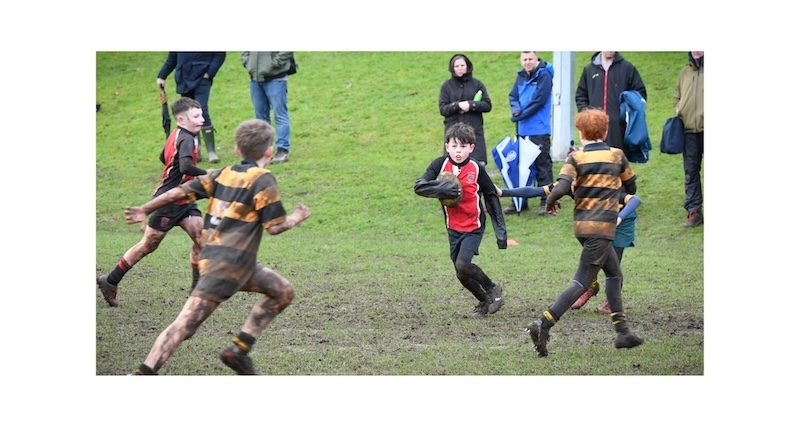 The home team started taking their chances and it was a masterclass by Jay who went over for four tries in the opening half. The most spectacular was a kick to the line from Rory that stopped 5m short of the goal line, putting Jay in a foot race with a Lasswade defender who arrived at the ball beside him. Jay slid onto the ball and wasn’t fully tackled, so sharp thinking saw him getting back up and over the line for a try of which Finn Russell and Darcy Graham would have been proud. Callum G (captain) also went over the try line. He could have had more scores but after his trademark powerful runs he was making well timed, smart offloads to his players, who were delighted to run in simple tries from his assists. His back door pass to Jay was spectacular.