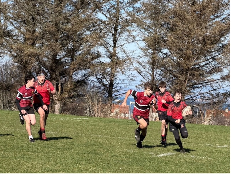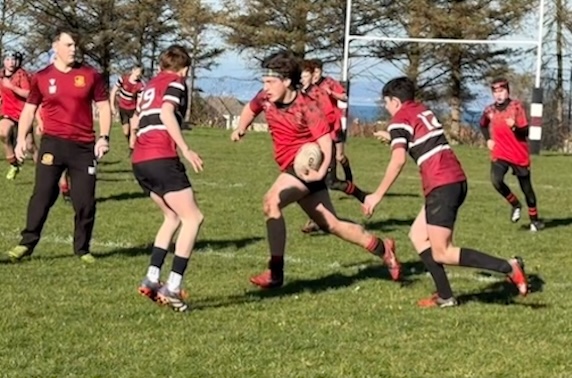 The focus was then turned to Preston Lodge who were an unknown quantity for the Under 14 Reds. From the opening minutes it was clear they had some robust forwards and spritely wingers. Linlithgow started well and pressed forward with strong running from Jay and Rory, both being rewarded with a try each in the opening 6 minutes. The extras were added by Max and Rory. The Reds were caught off guard by a quick restart kick and Preston Lodge scored a well worked try which they promptly converted.